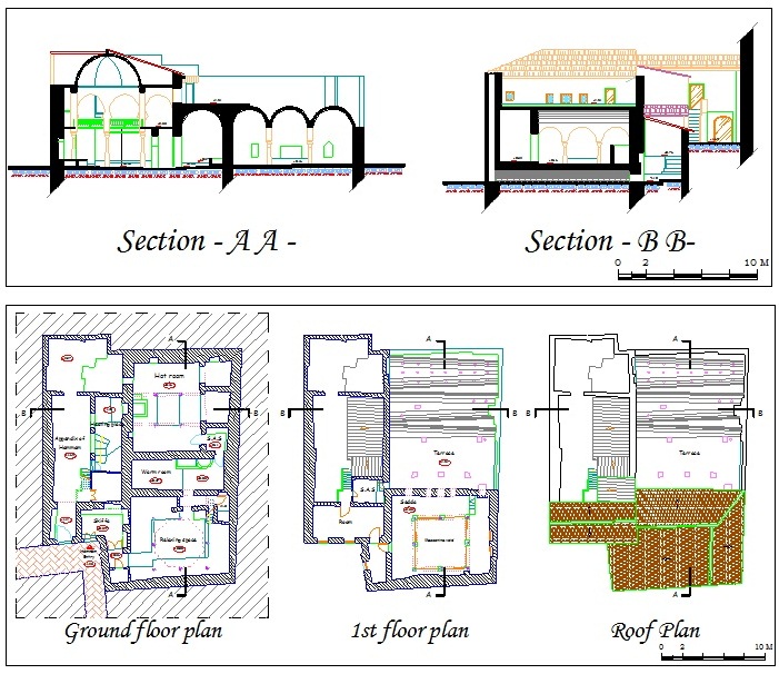 Relevés du hammam Souk el Ghezal-Constantine (2007). Laboratoire Villes et patrimoine (Projet HAMMAM)