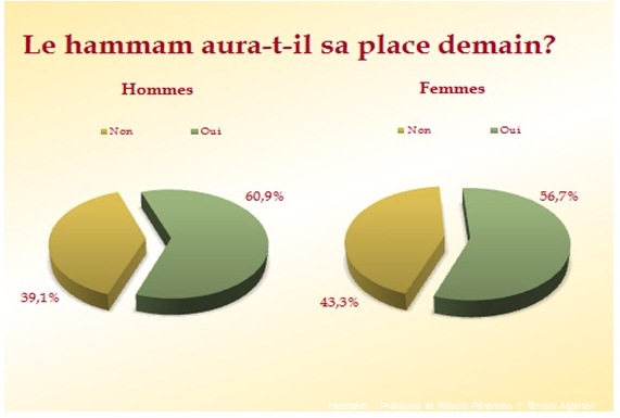 Les trois quarts des personnes enquêtées (hommes ou femmes) considèrent que le hammam est un espace important à sauvegarder.