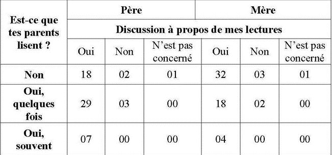 Ainsi, l’intervention des membres de la famille et un investissement culturel engagé de la part des parents, contribuent efficacement à la réussite scolaire et encouragent la pratique de lecture chez les adolescents.