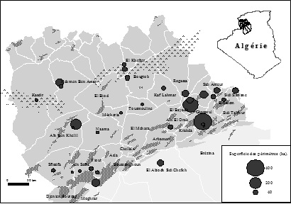 En Algérie, la politique de mise en valeur agricole a été lancée essentiellement depuis la promulgation de la Loi portant « Accession à la propriété foncière agricole » en 1983. Elle consiste à céder pour un dinar symbolique une portion de terrain en vue de la cultiver et la mettre en valeur principalement par l’irrigation ; le bénéficiaire qui réussit à exploiter cette terre devient propriétaire après cinq ans de travail. Cette politique, appliquée dans des zones aux compétences agro-pédologiques convenables, peut réussir facilement, mais dans la zone steppique à vocation pastorale, n’est-il pas risqué de généraliser cette opération sur ce type d’espace ? Certes, la céréaliculture a été toujours pratiquée dans la steppe, mais dans des zones exploitables sur le plan agricole (bas fond des vallées, daïas...). Aujourd’hui, les mises en valeur agricoles dans la steppe sont présentes dans plusieurs endroits, notamment dans les zones de parcours, sans se soucier de leurs aptitudes culturales. De ce fait, cette opération a suscité l’intérêt d’un grand nombre de personnes, nomades essentiellement, dans un but d’acquérir la propriété du terrain. Pour l’État, l’objectif de cette action, outre la création d’emplois, est l’amélioration des revenus ruraux. Quelles sont donc les contraintes que rencontre l’application de cette politique de mise en valeur agricole dans un espace steppique connu pour sa vocation pastorale, en particulier les Hautes Plaines sud oranaises ?