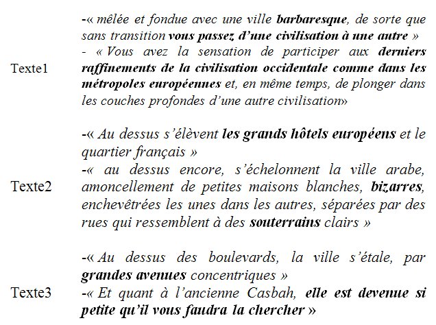 Par contre, à travers la description d’Alger qui est faite par Guy de Maupassant, Louis Bertrand, et Claude Farrère, dans trois textes différents, une image sous entendue et très subtile du français, se dessine. C’est l’image de l’homme moderne, civilisé, développé et raffiné. Celui grâce à qui, l’Algérie est devenue un pays cultivé et instruit. Une image très subjective qui prend corps avec l’histoire de l’époque relative à une réalité coloniale.