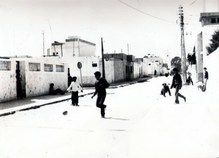 Fig. 3 : Quartier Essalah en 1979 : des jeunes jouant le football dans la rue.