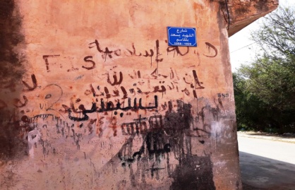 Les graffiti servent de canal d’expression aux discours politico-idéologiques, véhiculés sous forme d’énoncés linguistiques ou de signes figuratifs ou les deux à la fois. Ils sont souvent le résultat d’une conjoncture politique qu’ils accompagnent en la commentant. Le graffiti de la figure 2 [الجبهة الإسلامية للإنقاذ، إن الحكم لله أمر أن لا تعبدوا إلاّ إياه دولة إسلامية فيس،] « État islamique, Front Islamique du Salut. Le pouvoir appartient à Dieu et Il est ordonné de ne prier que pour Lui.», en est une illustration édifiante.