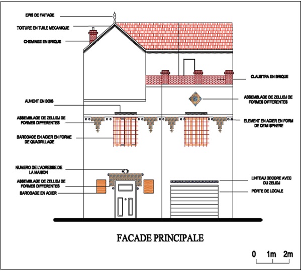 Dans les cas étudiés, l'intervention sur la façade ne concerne, que les travaux réglementés (Cas 1, 6). Elle traduit un désir implicite des habitants de s’ouvrir sur l'extérieur, et ce, via l’élargissement des baies et la diversité des formes de décoration habillant les façades. Cette innovation contraste avec les façades traditionnelles souvent aveugles (austérité décorative, absence de grandes baies, entrée en chicane...). Cette tendance « d’extroversion contrôlée » dans le sens de Navez-Bouchanine (1994) permet d’exprimer une urbanité différentielle des groupes sociaux affichant ainsi une distinction sociale (Semmoud, 2007). La façade devient ainsi un espace de représentation chargée de signes d’urbanité, de patrimonialité et de contemporanéité.