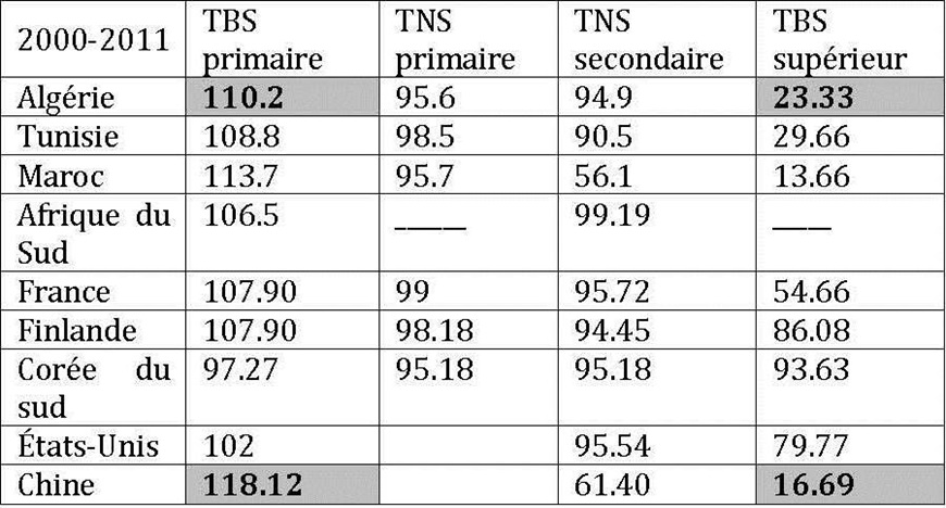 Tableau 1: Moyenne des taux de scolarisation entre 2000-2011 en Algérie en comparaison avec d’autres pays