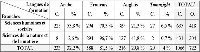 Tableau 2 : Les langues de formation des étudiants selon les branches[6]