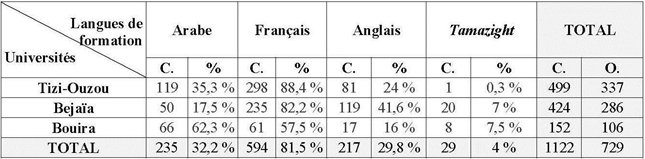 Tableau 3 : les langues de formation des étudiants selon les universités