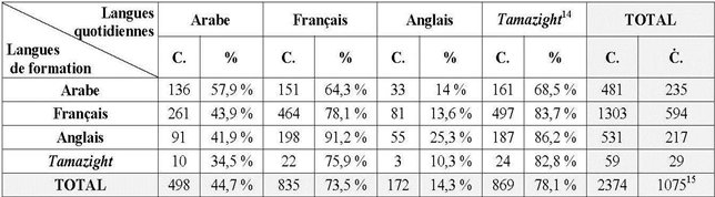 Tableau no 5 : les langues quotidiennes selon les langues de formation[13][14][15]