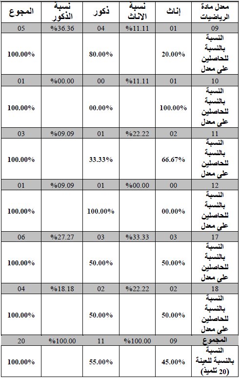 1. ما هي نسبة الاناث بالنسبة للذكور الحاصلين على معدل