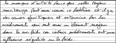 C’est dans ce contexte que nous avons invité nos étudiants à écrire un texte au niveau duquel ils expliquent ce qu’est l’obésité et verbalisent toutes les informations dont ils disposent sur ce sujet.