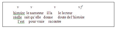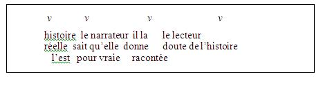 Dès lors le doute s’installe puisque le lecteur sait que la mémoire n’est pas infaillible. Ce qui nous renvoie au «contrat de fiction» de M. Mathieu-Colas, mais en nous intéressant au cas des textes factuels. Selon Mathieu-Colas, dans le cadre d’un texte factuel, nous nous trouvons face à ce type de contrat: