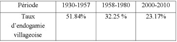 Tableau 1 : Taux d’endogamie villageoise sur trois périodes successives