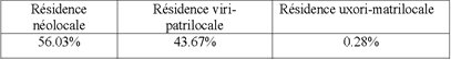Une telle situation n’est pas sans incidence sur le fait que le choix du conjoint devient relativement plus une affaire individuelle que groupale. Le modèle de résidence patrilocale ne relève que d’une cohabitation provisoire et nous supposons qu’il est enclin à se raréfier dans l’avenir. Cependant, la matrilocalité se révèle d’un type de résidence qui commence à faire son apparition. Pour la période explorée, sa proportion reste, toutefois, relativement faible. L’analyse des mécanismes de résidence a,  par ailleurs,  montré la capacité du mariage,  à apporter des mobilités et des modifications profondes aux groupes familiaux, dans son aspect relationnel, est sa configuration physique.