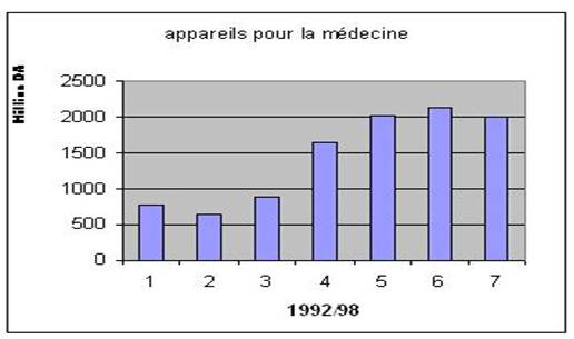 Tous ces efforts n'ont pas donné les résultats escomptés. Mais, les compétences existantes peuvent valoriser la formation et la recherche en essayant d'être plus entreprenant et d'instaurer une des équipes pluridisciplinaires afin de valoriser la recherche. Les statistiques (voir les histogrammes) sont un indicateur révélateur des possibilités d'un partenariat dans l'appareillage biomédical, fort taux d'importation en ce qui concerne ce type d'équipement, en plus Oran est l'une des régions du pays où se localise un grand nombre de cliniques privées.