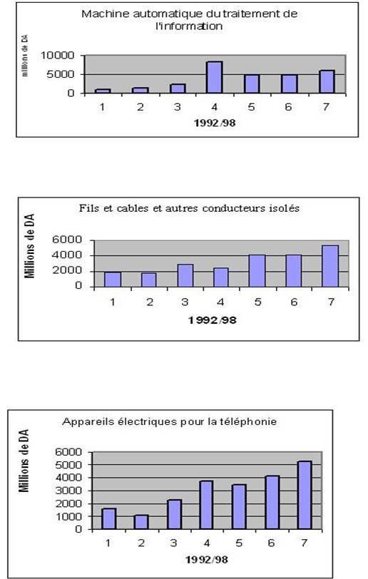 De point de vue des résultats (voir les histogrammes) ; c'est une branche qui est totalement dépendante de l'extérieur, voir le fort taux d'importation pour tous les produits de l'électronique, et le faible taux d'intégration pour les produits fabriqués localement car il s'agit plus d'une opération de montage que d'une opération de production.