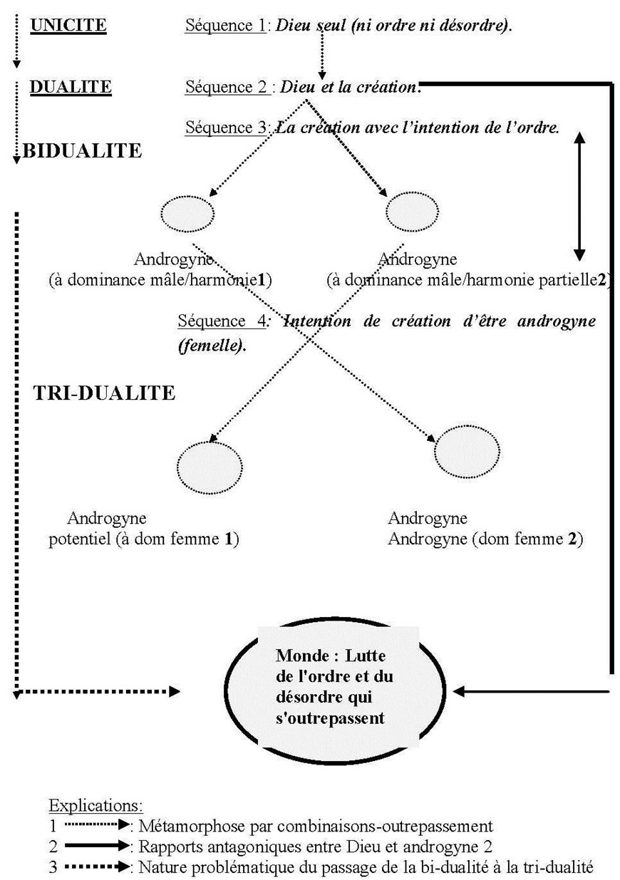 Pour une meilleure compréhension, nous présenterons d’abord les trois formes élémentaires des figures de l’ordre et du désordre; ensuite, nous ferons un détour anthropologique de ces figures mythiques.