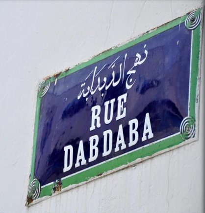 [1] La rue de la Dabdâba se trouve près de la kasbah de Tunis, qui donne directement sur le boulevard Bab -bnet presque devant le mausolée de Farhaet Hached. Pour l’appellation, nous dégageons deux hypothèses, la première est due au dénivellement de la rue par rapport au boulevard Bab- bnet, ce qu’on appelle en dialecte tunisien une zourziha ou sûrsîba, dont le passage (الدَّبيب) des habitants et des bêtes de sommes créaient un son fort de marche d’où l’origine de l’appellation. La deuxième hypothèse est probablement une allusion liée aux vacarmes des activités industrielles déjà installées bel et bien avant le XIXe siècle et le règne d’Ahmed bey.