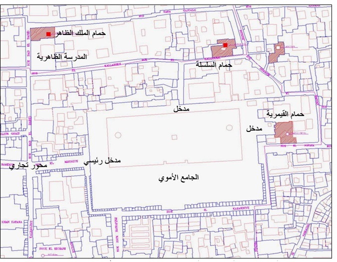الشكل4: الجامع الأموي و الحمّامات المجاورة له