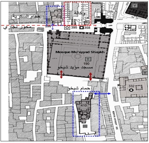 الشكل 1 : تجاور الحمّام للمسجد و الخانقاه في القاهرة