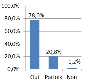 L’implémentation d’un module aidant dans la simulation est plus que justifiée (57,2% parfois et 30,8% oui) à la question Q5, nettement chez les étudiantes PES.