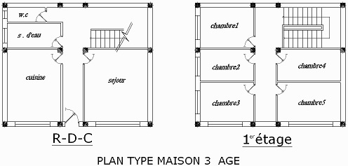 Elle annonce l’achèvement du processus d’atomisation de la famille nucléaire qui semble en situation de s’acquitter de la tutelle et de la protection du groupe familial. Aussi la construction de la maison en dehors du village traduit-elle cette nouvelle condition de l’émigré. Laquelle atomisation est aussi portée et rendue possible par les politiques de développement conduites par l’Algérie indépendante tant au niveau national que local. La maison du troisième âge engendre l’éclatement de la trame villageoise et la construction de la conurbation largement entamée par des groupes de villages et s’inscrit également dans le glissement de la montagne vers la vallée. La conquête de la voie de communication est essentiellement l’œuvre des maisons individuelles avant de définir une règle organisatrice fondatrice du cadre bâti[10] (Messaci, 1990). La maison du troisième âge enclenche le processus de l’éclatement de la trame villageoise. Elle se distingue des deux premières par le site d’implantation. Sa situation en dehors du tissu villageois est caractéristique de cette maison. Elle investit autant la voie de communication que les champs. La localisation dans des champs, réservés à l’agriculture de subsistance, participe de la phagocytose de ces espaces autrefois vivriers. Cependant, l’alignement sur une voie de communication est plus convoité et s’avère l’axe dynamisant de la nouvelle construction. Elle induit la conquête de la voie de communication que le village traditionnel a su contourner. Reprenant le modèle urbain uniformisé sur l'ensemble du territoire national, la maison du troisième âge s'articule autour d'un couloir et a un caractère apparent d’ouverture sur l'extérieur. Longtemps soustraite aux regards indiscrets, la maison d'aujourd'hui s'offre à l'œil du visiteur et semble recouvrir un droit longtemps occulté : celui de paraître. La maison se reconnaît à son volume architectural important et imposant. Réalisée avec de nouveaux matériaux (parpaings, briques, siporex..), elle est généralement construite sur deux ou trois niveaux, le rez-de-chaussée est destiné à une fonction commerciale ou artisanale. Elle introduit ainsi la mixité fonctionnelle de la maison, aujourd’hui érigée en règle .L'organisation de l'espace intérieur compartimenté et spécialisé est plus le résultat d'une composition géométrique articulée autour d'un espace nouveau : le couloir, qui participe à une distribution de l'espace intérieur qui se voudrait plus rationnelle. L’espace intérieur est articulé autour d’un couloir qui distribue l’ensemble des pièces monofonctionnelles (chambre à coucher, séjour, cuisine..,). L’existence de balcon étonne car il n’est pas usité de façon optimum, les familles sont en général soucieuses de ne pas s’exposer aux regards extérieurs. L’emploi de nouveaux matériaux achèvent le processus de rupture formelle avec la maison traditionnelle, les toitures sont de deux types : en pente ou plate, le dernier type est employé souvent dans l’espoir d’une extension verticale future. La maison est pourvue de grandes ouvertures qui lui confèrent ce caractère d’ouverture. Volume ouvert sur l’environnement par ces fenêtres, l’organisation de l’espace intérieur est plutôt introverti par cette distribution interne contrairement à la maison du deuxième âge, une organisation innovante qui inverse le rapport de l’espace intérieur–extérieur à l’environnement.